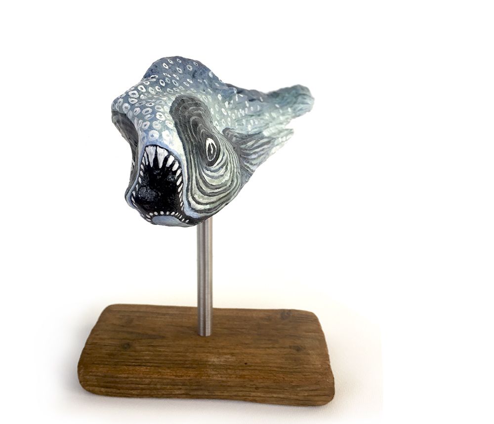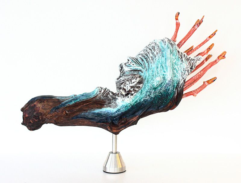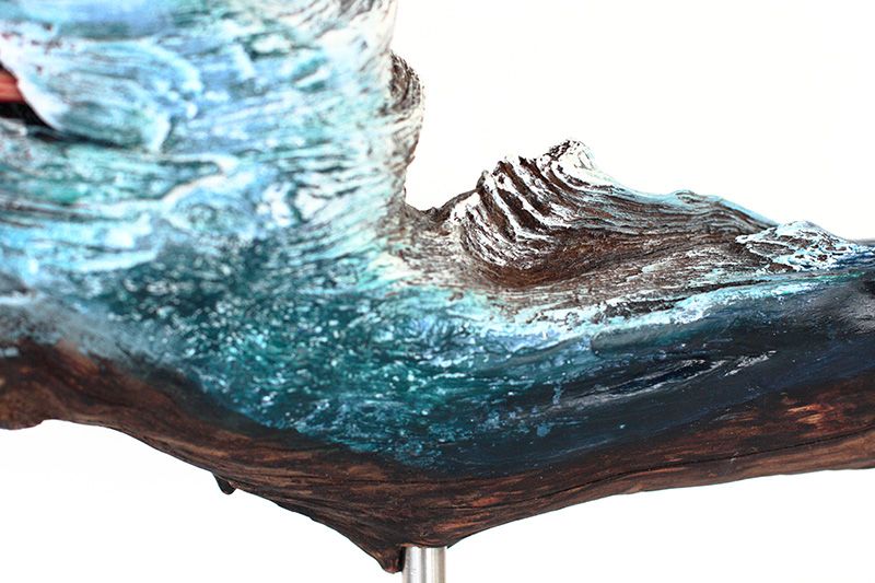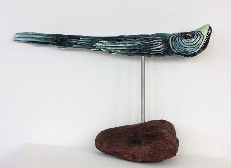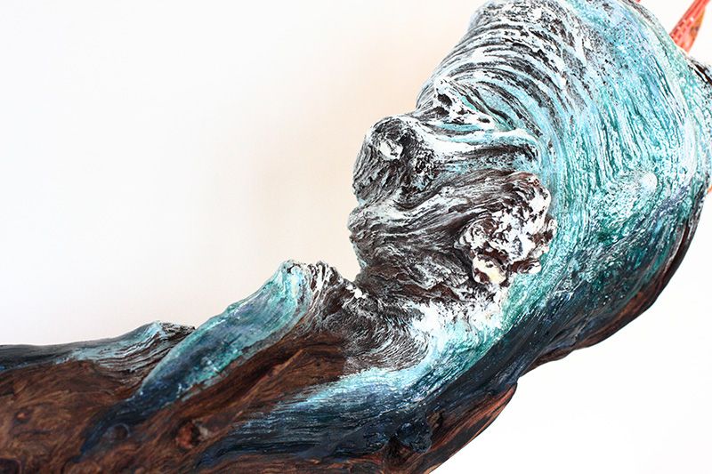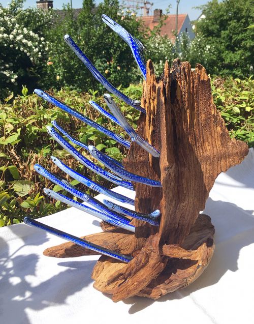 1. Fuß aus Treibholz Acrylfarben angedeutet und matt lackiert: Länge 12 cm Höhe 14 cm