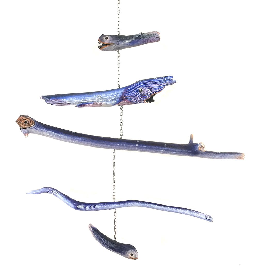 5 Fische als Aufhänger, Höhe ca. 50 cm, mittlerer Fisch Länge: 45 cm