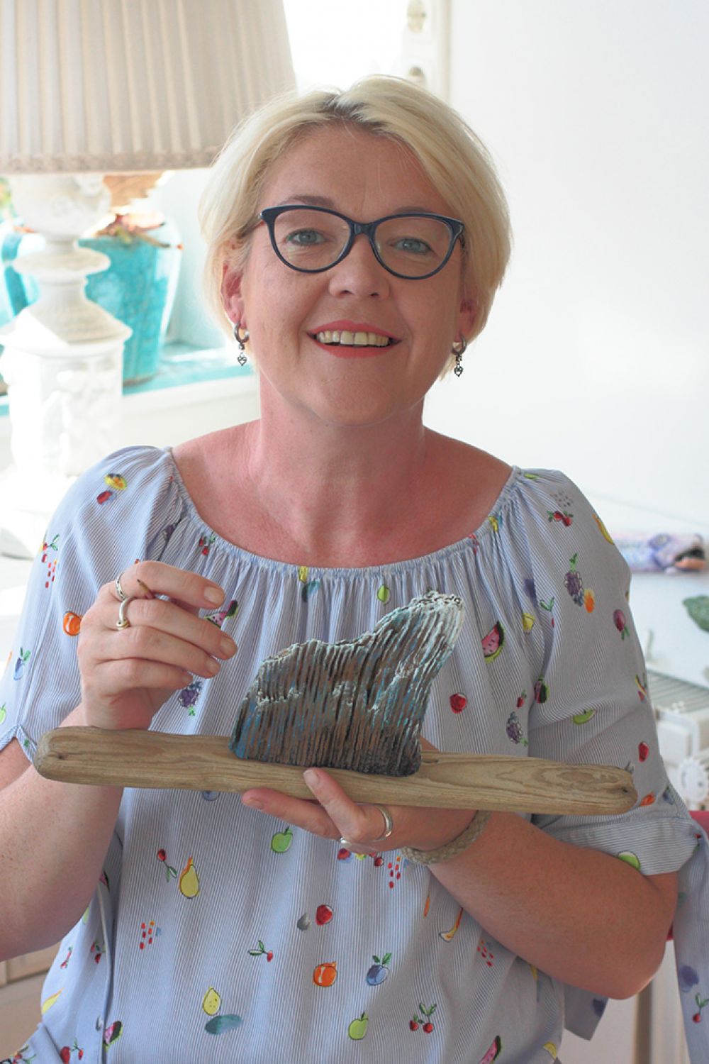 Nach einem langsamen Trocknungsprozess werden die Stücke gereinigt, eingelassen und anschließend von mir mit Acrylfarbe bemalt. Zum Abschluss werden sie lackiert.