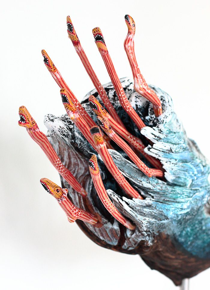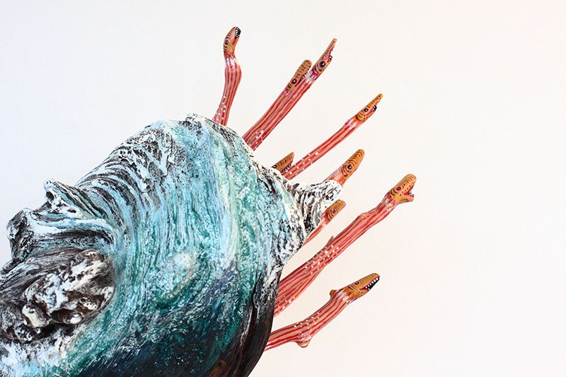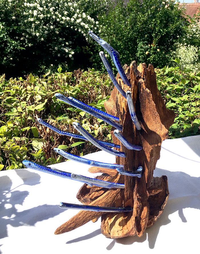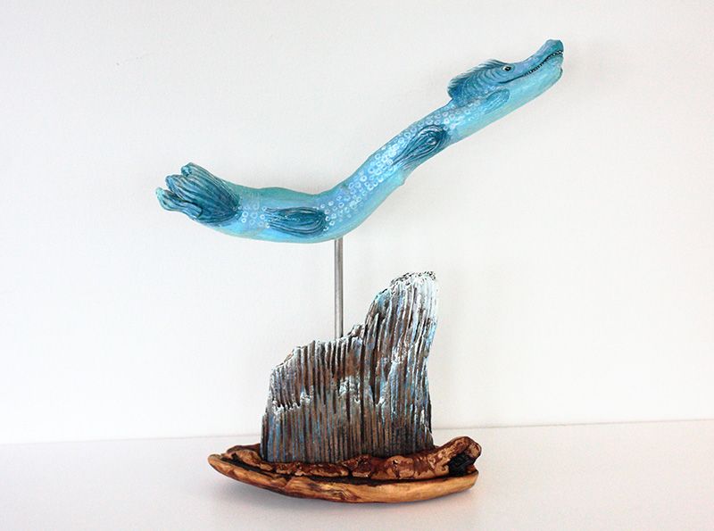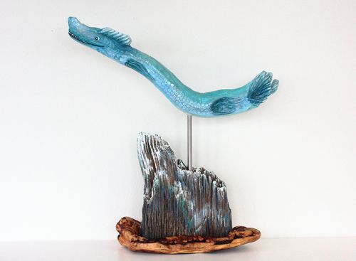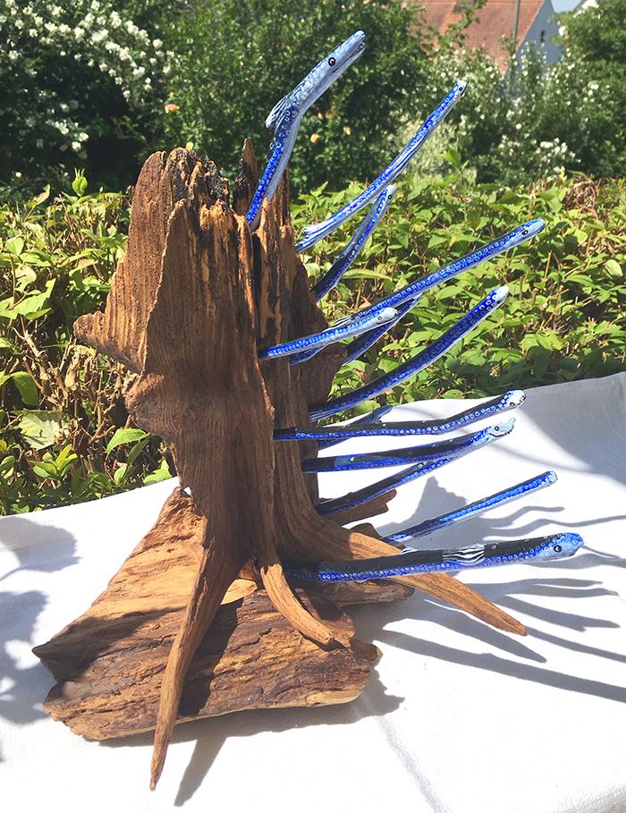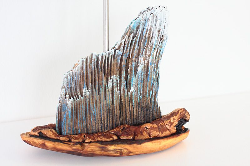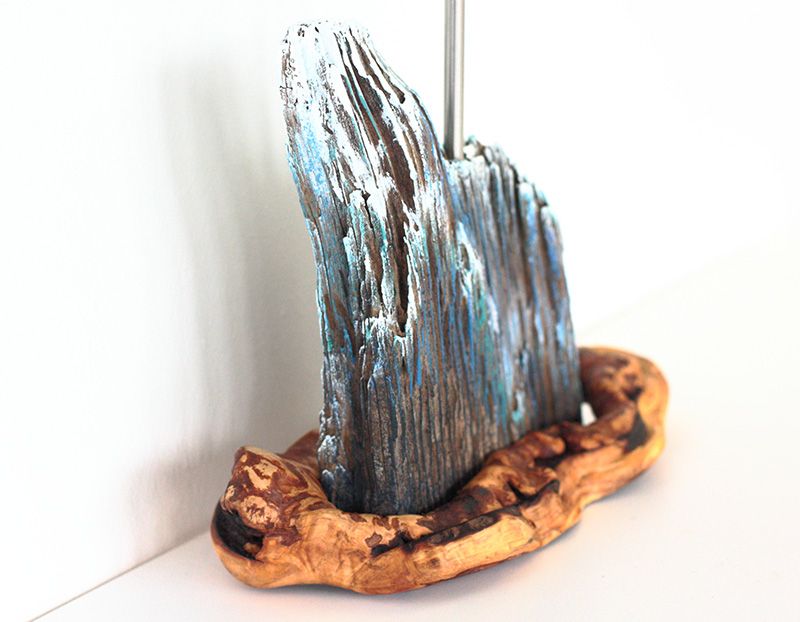 1. Fuß aus Treibholz Acrylfarben angedeutet und matt lackiert: Länge 12 cm Höhe 14 cm