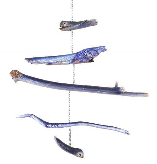 5 Fische als Aufhänger, Höhe ca. 50 cm, mittlerer Fisch Länge: 45 cm